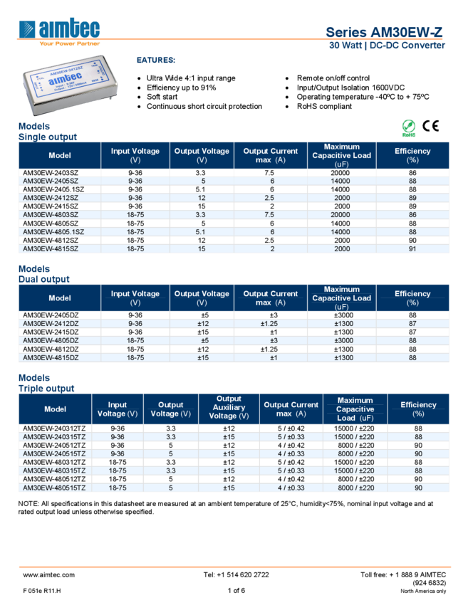 Module DC-DC 1-OUT 12V 2.5A 30W Bulk