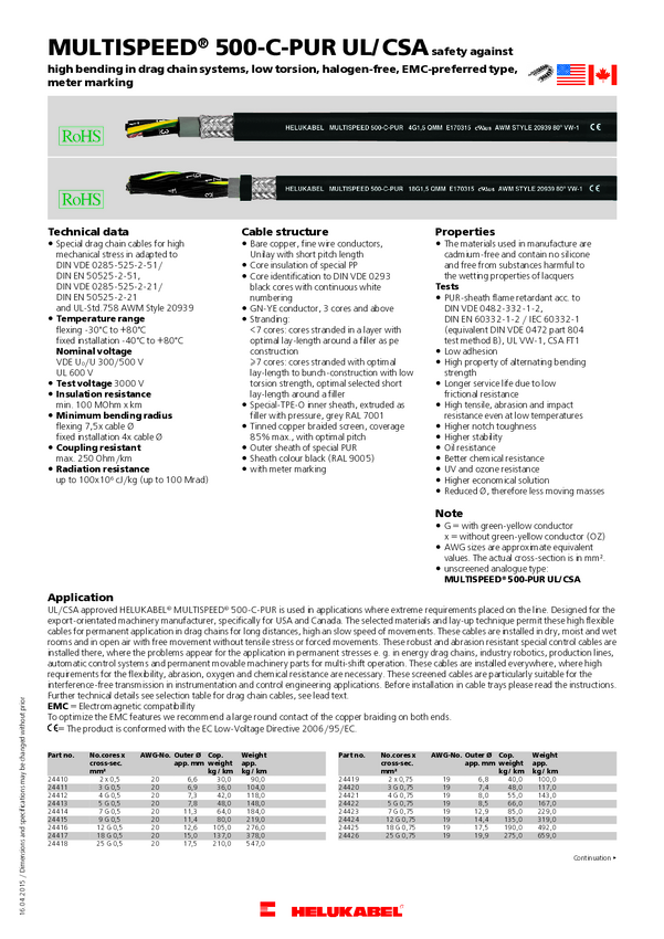 Helukabel 24429 Przewód do prowadnicy kabli M-SPEED 500-C-PUR UL 4 G 1 mm² czarny 100 m