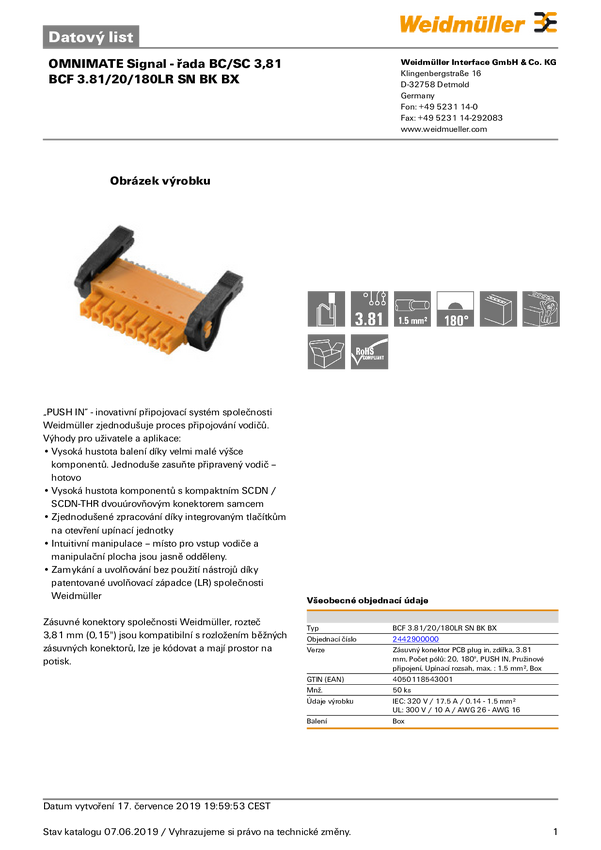 Weidmüller 2442900000 Złącze męskie PCB Łączna ilość styków 20 Ilość rzędów 1 50 szt.