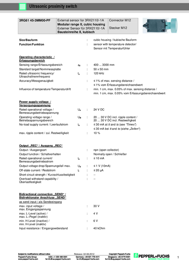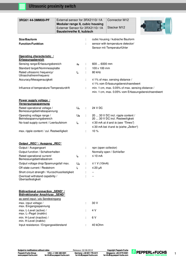 Czujnik ultradźwiękowy Pepperl+Fuchs 246966 1 szt.