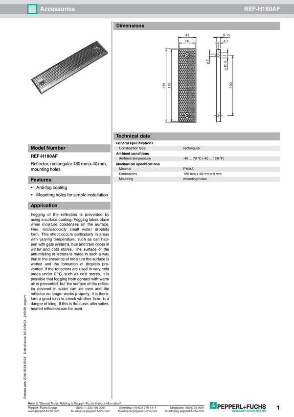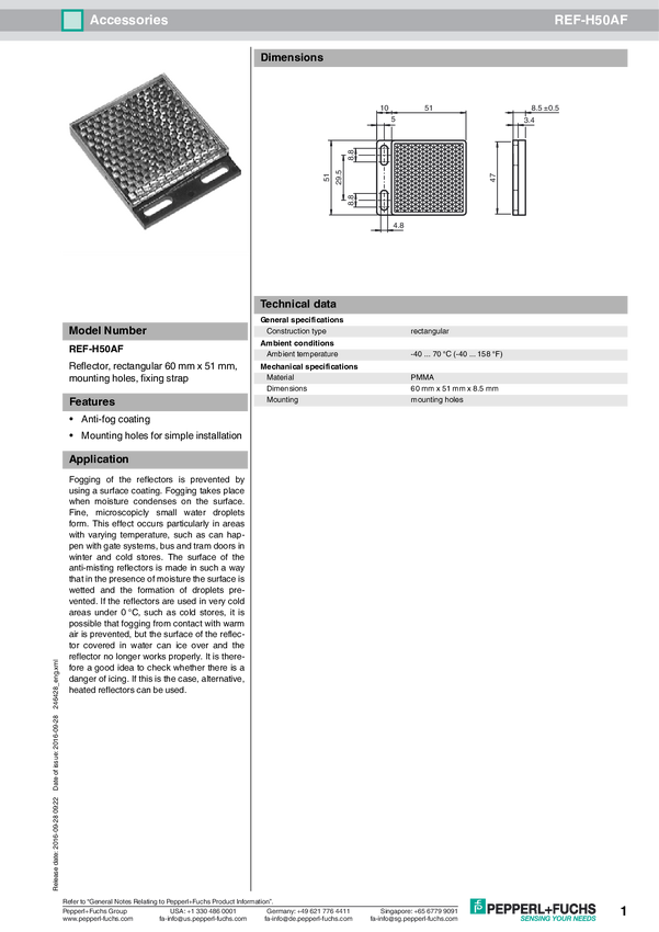 Odbłyśnik Pepperl+Fuchs REF-H30x60 246176 5 szt.