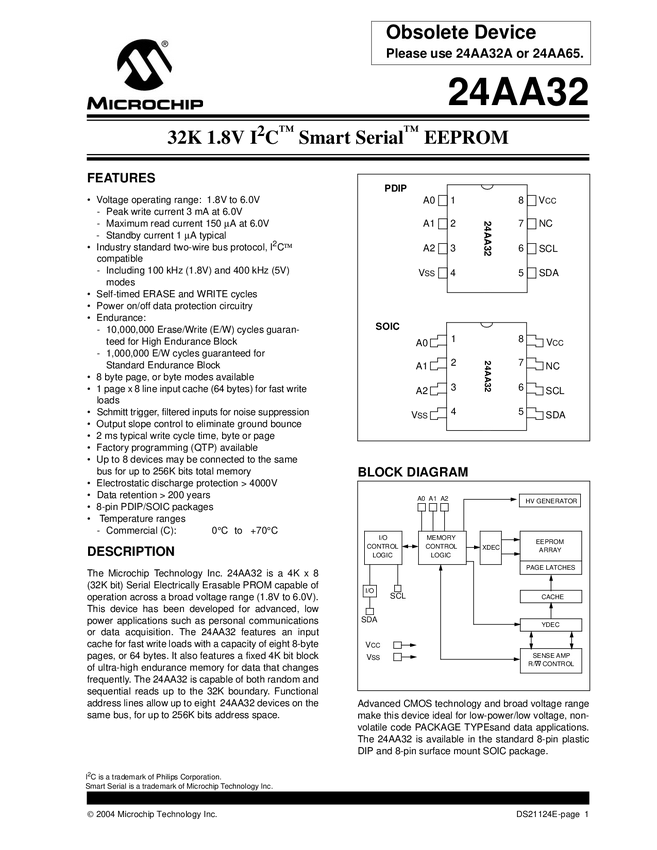 24AA32A/24LC32A - 32-Kbit I2C Serial EEPROM Data Sheet