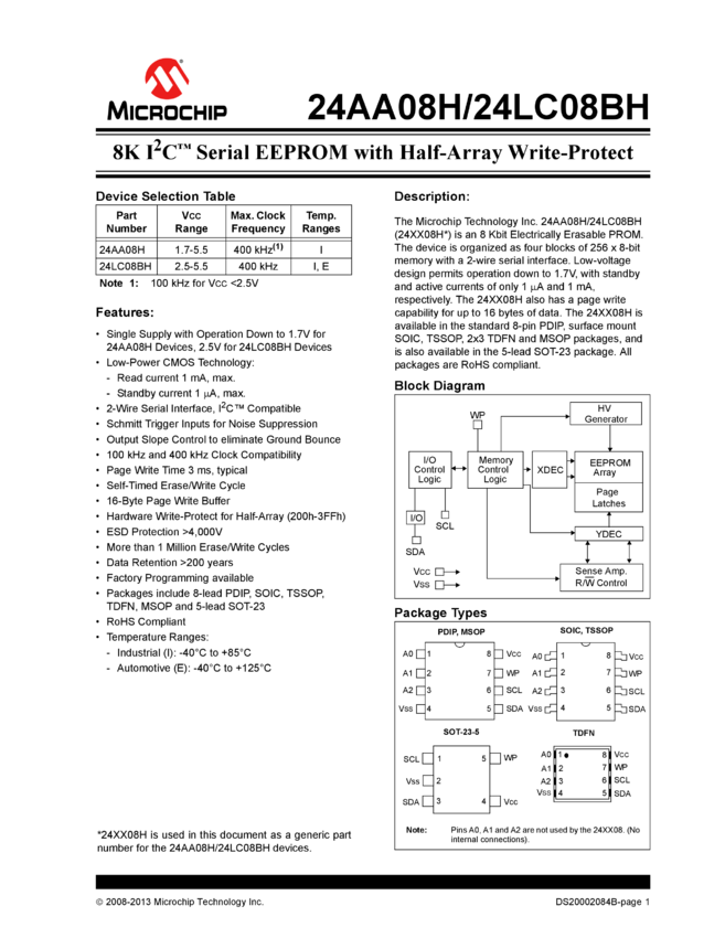 24AA08H, 24LC08BH Data Sheet (11/22/2013)
