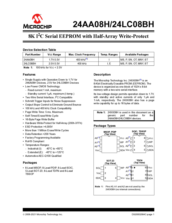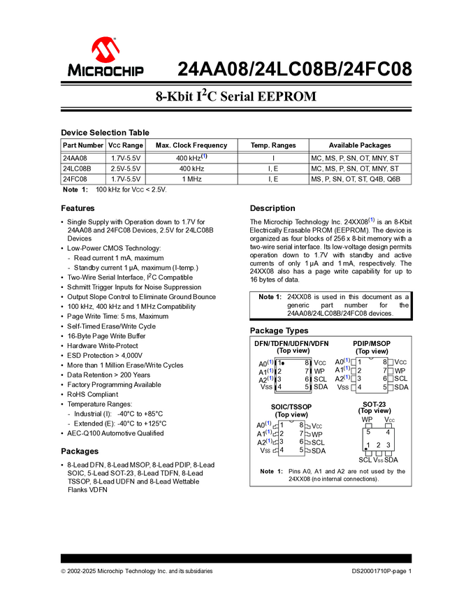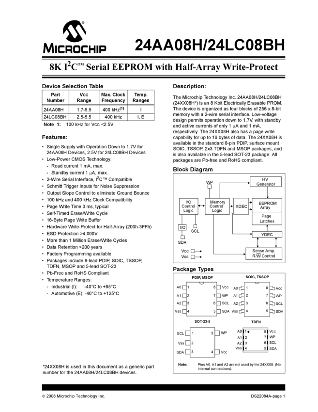 24AA08/24LC08B/24FC08 - 8K I²C Serial EEPROM Data Sheet