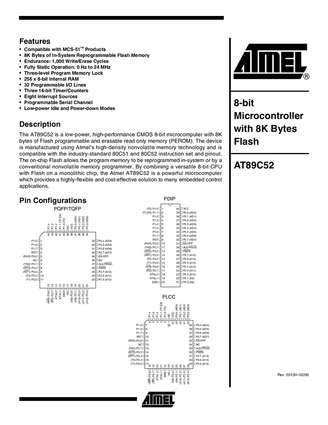 Mikrokontroler 8-bit, 12KB Flash, 2KB EEPROM, 2Kb RAM, DIL40, 2.7...5.5V