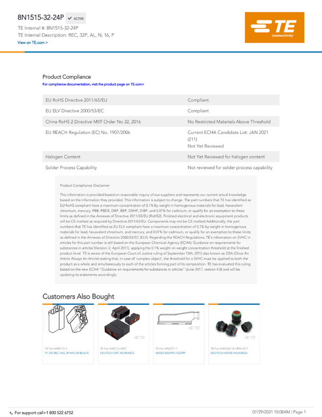 TE Connectivity 8N1515-32-24P TE ICT CE Connector, 1 szt.