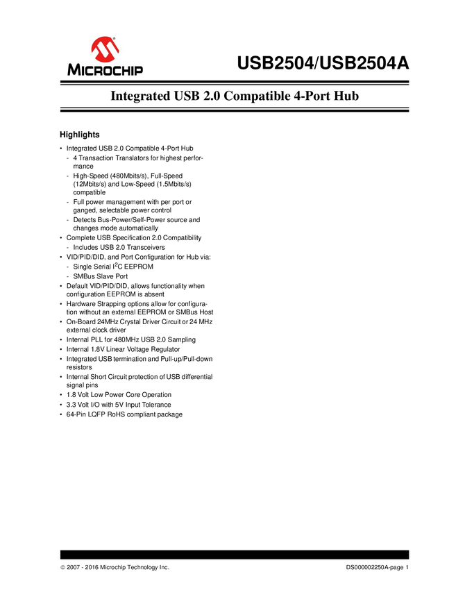 USB2504/2504A Integrated USB 2.0 Compatible 4-Port Hub Data Sheet