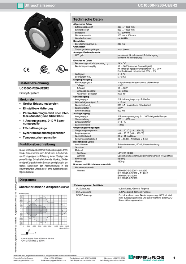 Czujnik ultradźwiękowy Pepperl+Fuchs 250794 1 szt.