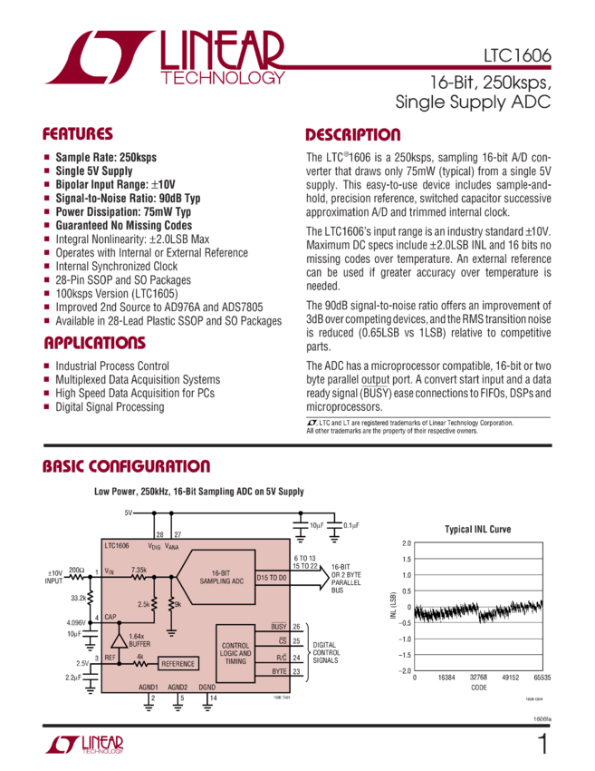 16-Bit, 250ksps, Single Supply ADC