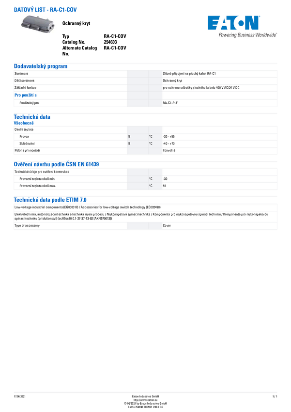 Pokrywa Eaton RA-C1-COV 1 szt.