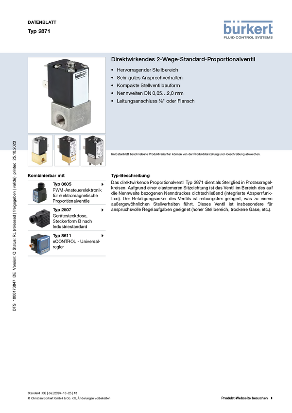 Zawór regulacji ciśnienia proporcjonalny Bürkert 2871 254453