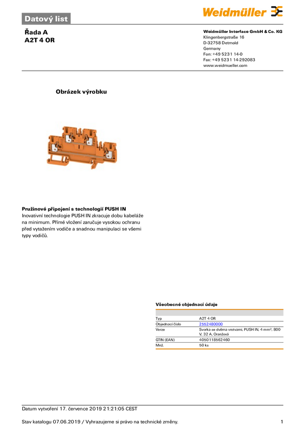 Terminal przepustowy, podwójny Weidmüller 2552590000 zacisk push-in 50 szt.