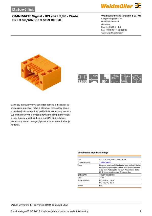 Weidmüller 2559420000 Złącze męskie PCB Łączna ilość styków 40 20 szt.