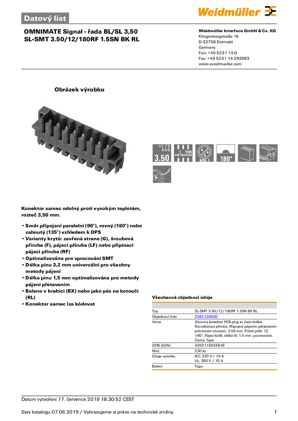 Weidmüller Obudowa złącza pin męskiego na PCB 2585130000 230 szt.