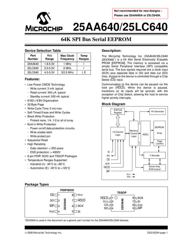 25AA640/LC640 Data Sheet - Not recommended for new designs