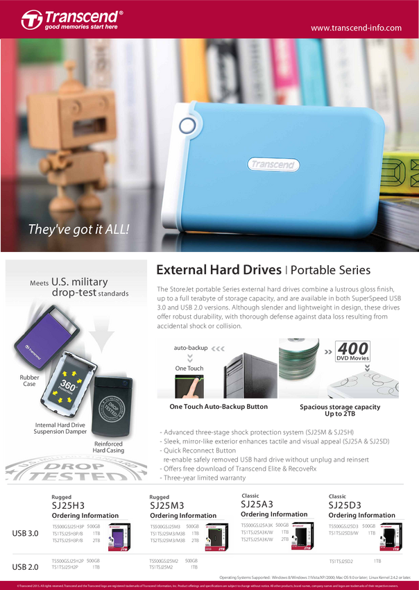 Transcend StoreJet® 25H3 2 TB Zewnętrzny dysk twardy 6,35 cm (2,5'') USB 3.2 Gen 1 fioletowy TS2TSJ25H3P