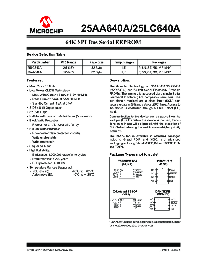 25AA640A/25LC640A 64K SPI Serial EEPROM Data Sheet