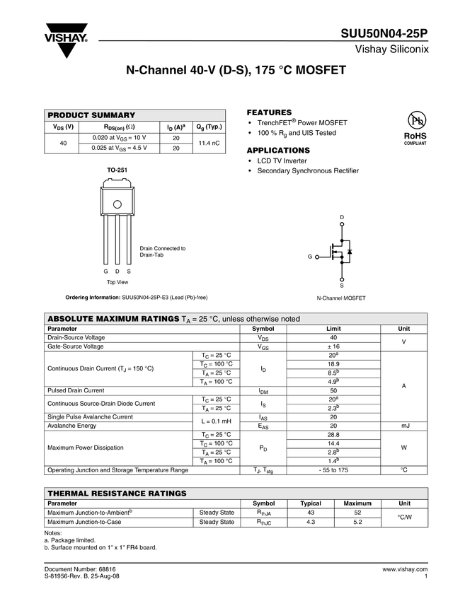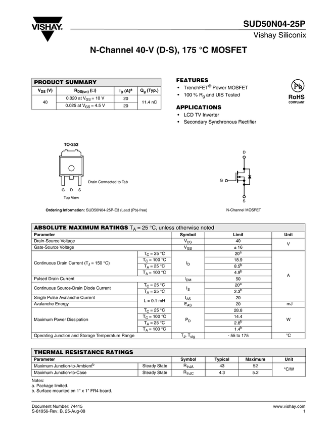 'N-Channel 40-V (D-S), 175C MOSFET'