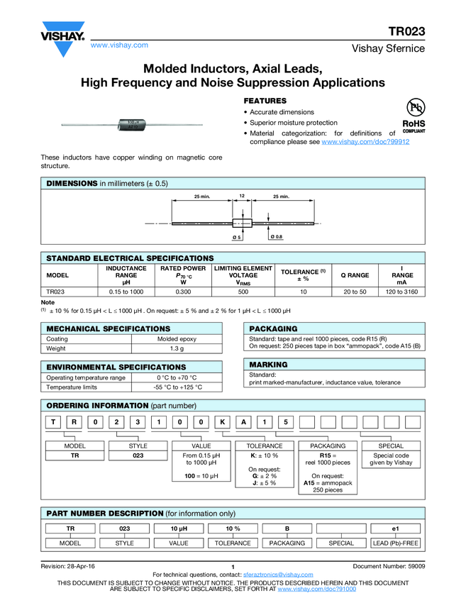Ind High Frequency Molded 10uH 10% 7.9MHz 25Q-Factor 700mA AXL T/R