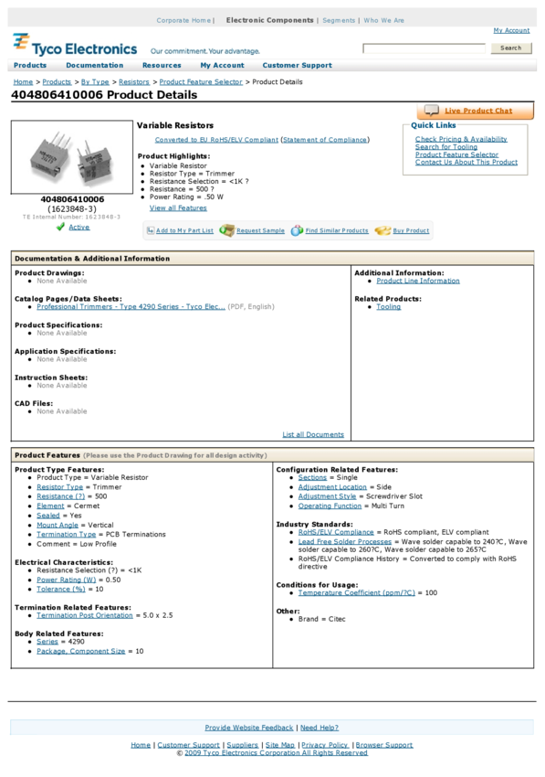 Res Cermet Trimmer 500 Ohm 10% 1/2W 25Turn Pin Thru-Hole