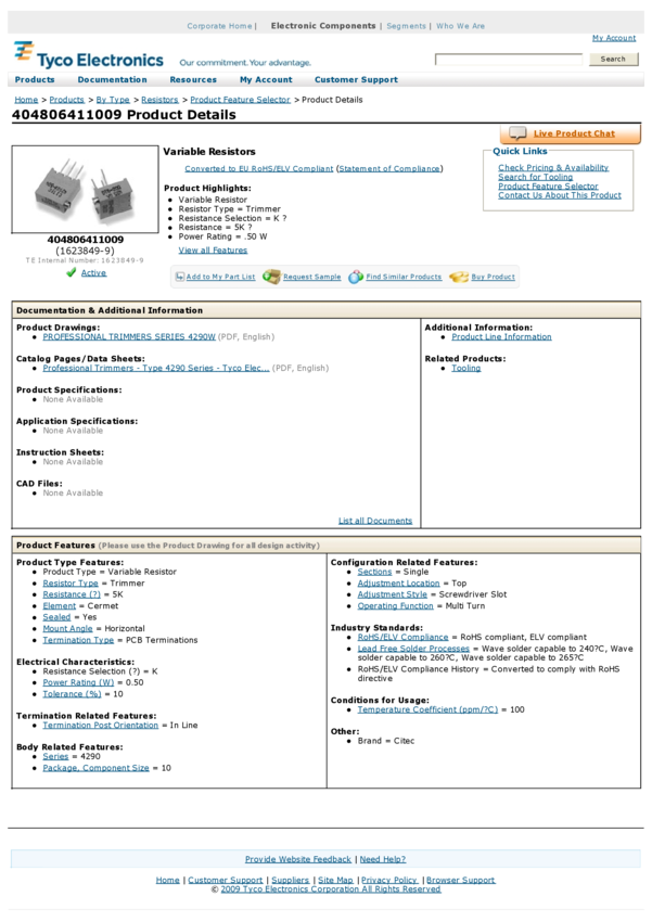 Res Cermet Trimmer 5K Ohm 10% 1/2W 25Turn Pin Thru-Hole