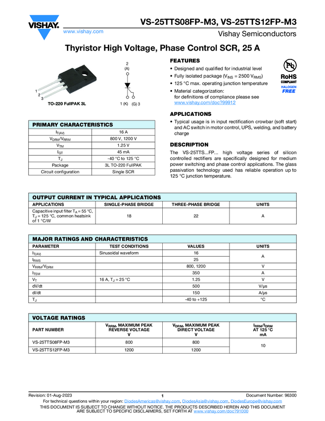 Thyristor, Surface Mount, Phase Control SCR, 16 A