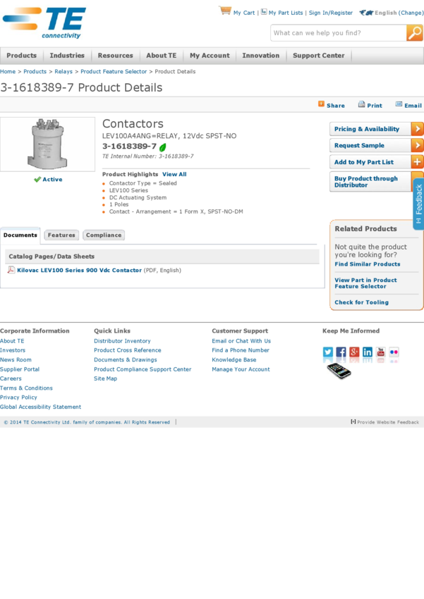 Electromechanical Relay SPST-NO-DM 100A 12VDC 26Ohm Flange Mount