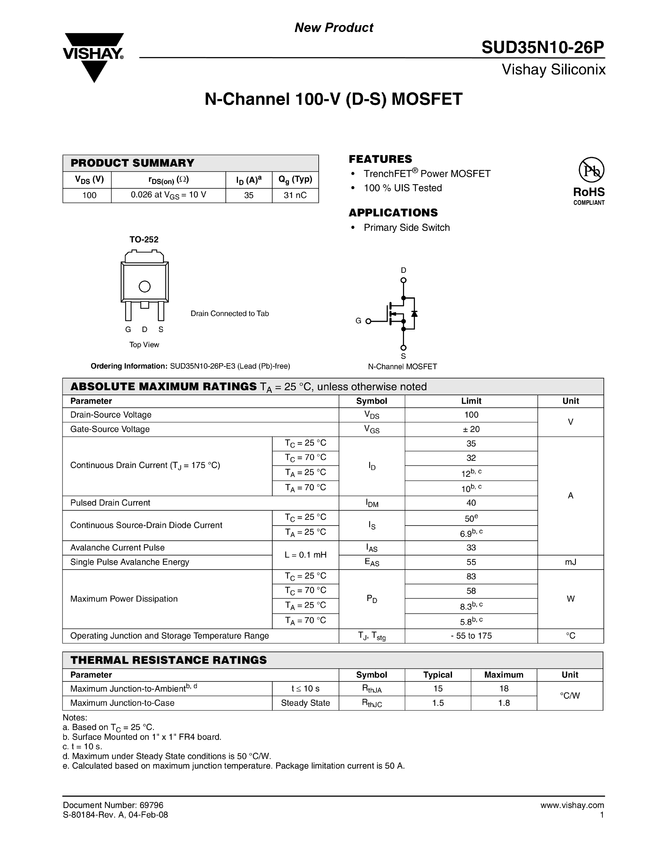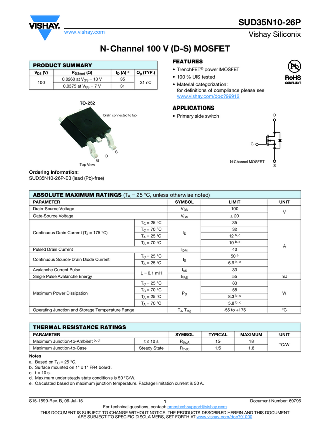 SUD35N10-26P