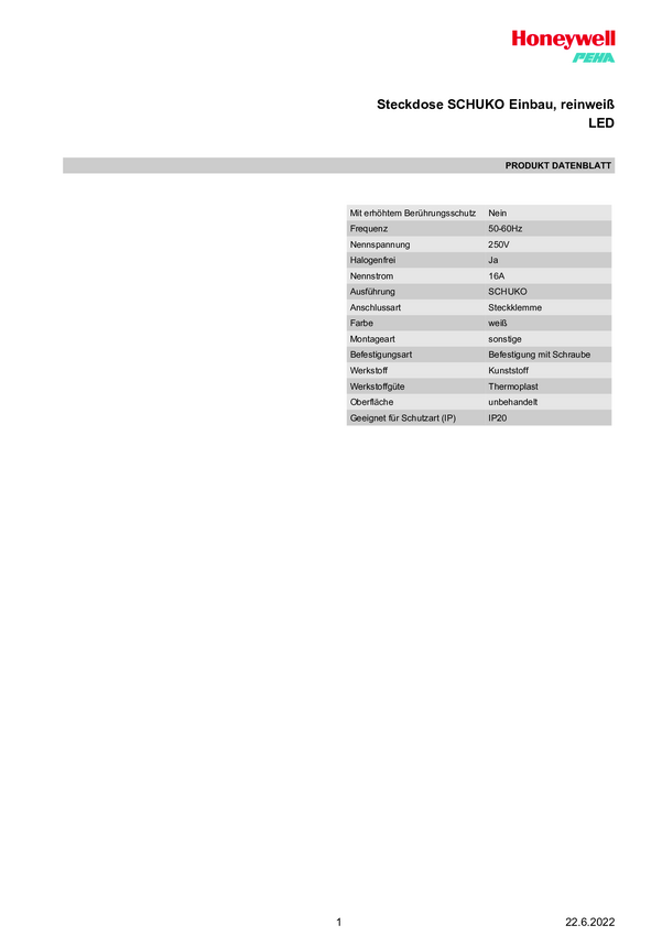 PEHA by Honeywell 1 x Płytka przycisku Gniazdo elektryczne biały 271611 1 szt.
