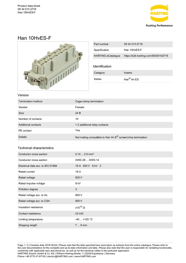 Złącze przemysłowe 09 34 010 2716 Harting Zawartość: 1 szt.