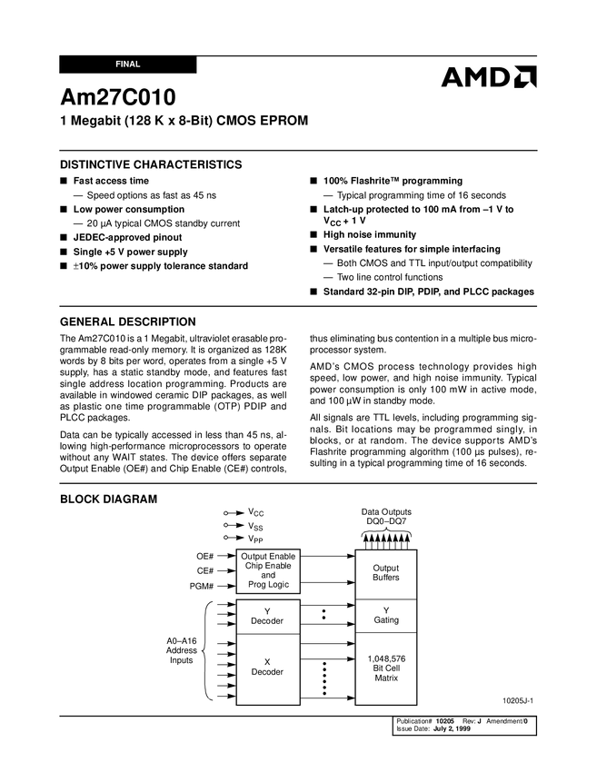 Pamięć EPROM 27C010 DIL32 (UV) AMD 150ns