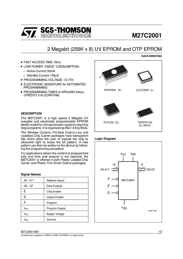 CMOS EPROM 256kx8; 100ns; DIC32 =M27c2001-10F1 27C020-100/27C2001-100