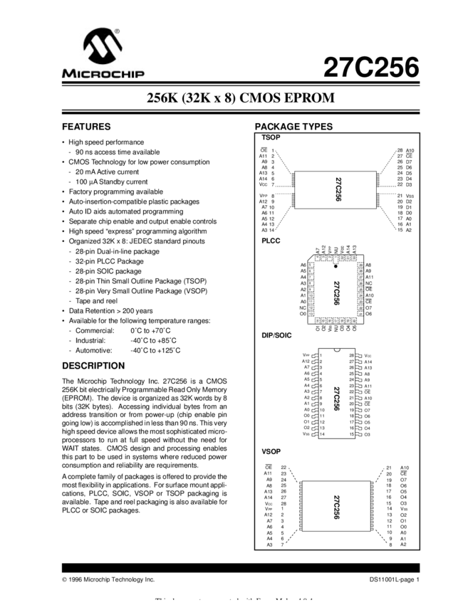 OTP-EPROM, 256Kb, 32Kbx8, PLCC32