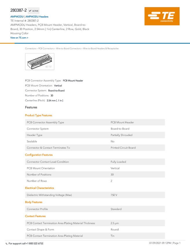 TE Connectivity 280387-2 TE AMP AMPMODU Shrouded Headers, 1 szt.