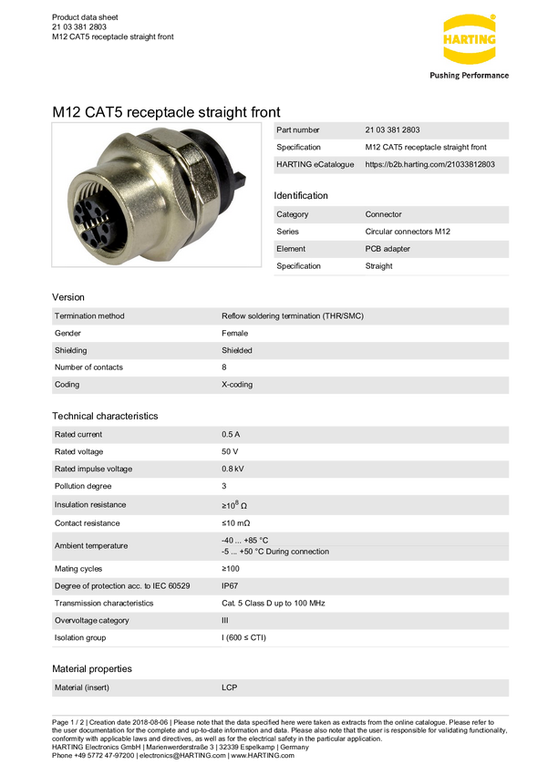 Harting 21 03 381 2803 Złącze męskie PCB złącze żeńskie proste 1 szt.