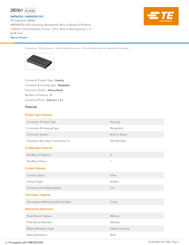 TE Connectivity 280361 TE AMP AMPMODU Mod IV V, 1 szt.