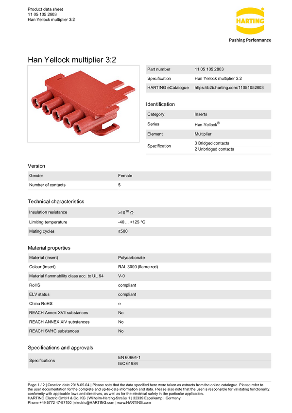 Złącze przemysłowe 11 05 105 2803 Harting Zawartość: 1 szt.