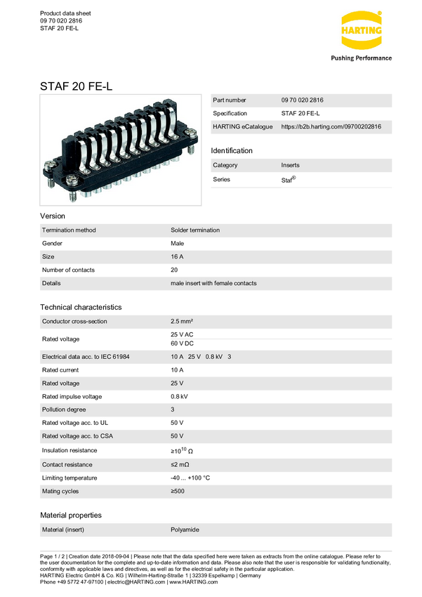 Złącze przemysłowe 09 70 020 2816 Harting Zawartość: 1 szt.