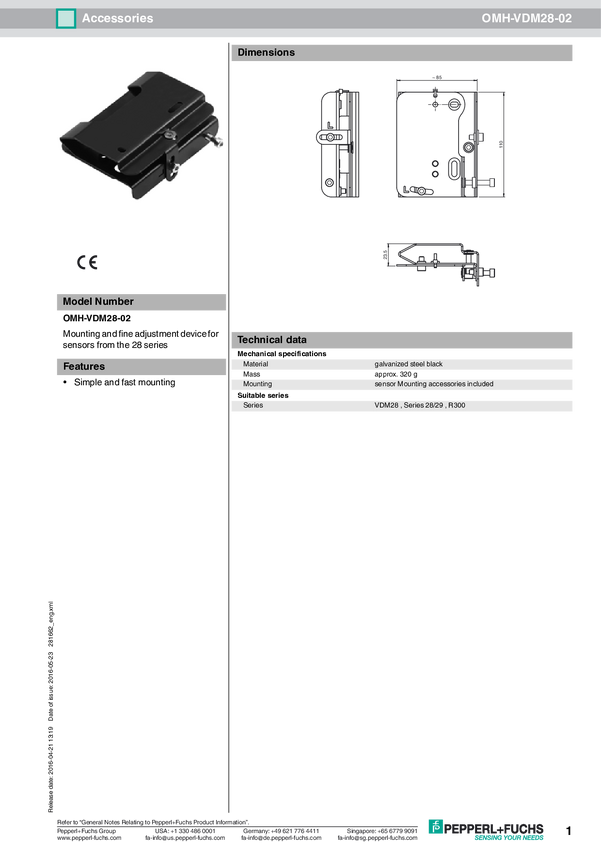 Pomoc montażowa Pepperl+Fuchs OMH-VDM28-02 281662 1 szt.