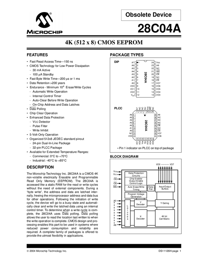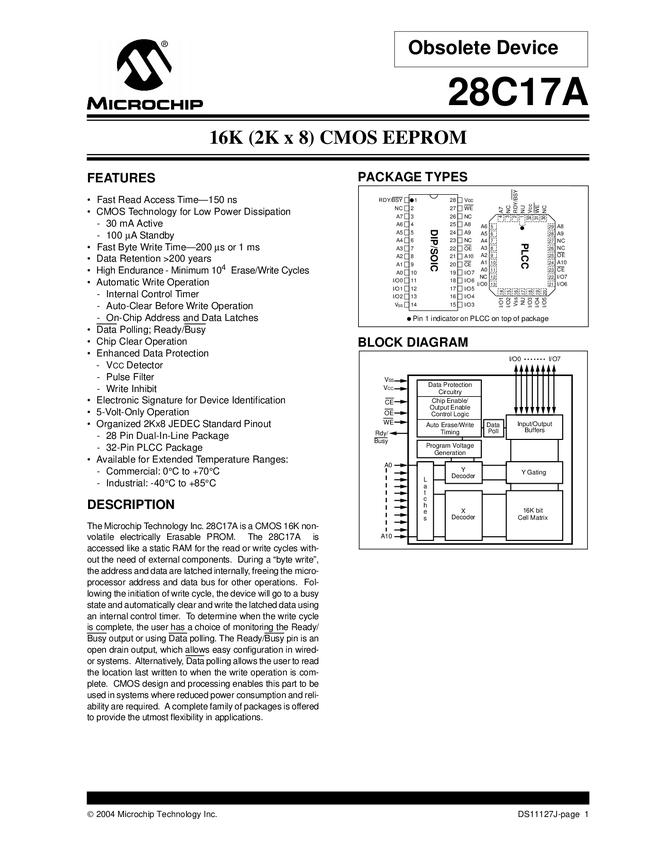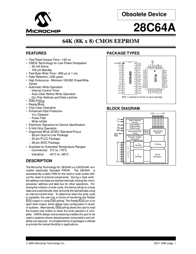 EEPROM, równoległa, 64Kb, 8Kbx8, DIL28