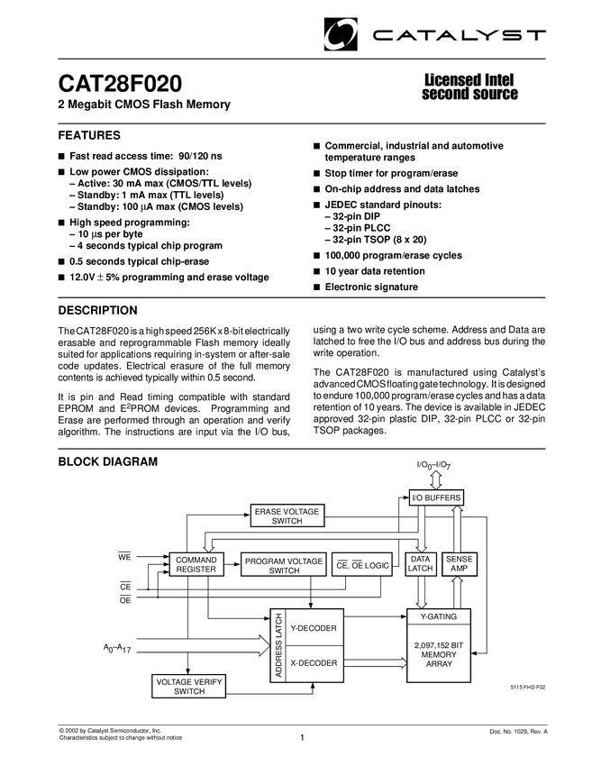 C-Flash-EPROM 64Kx8 120ns DIP32 - cat28f512-120 proponujemy 28f020-90