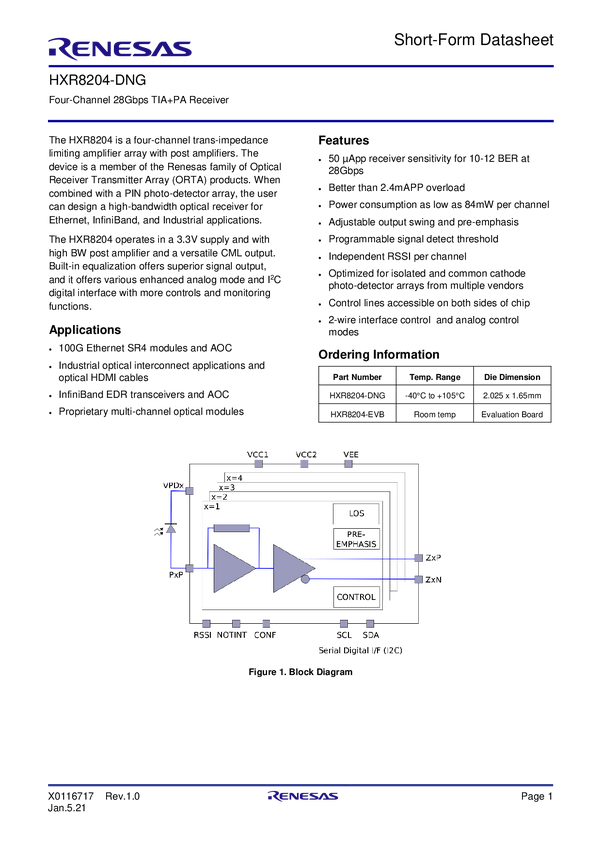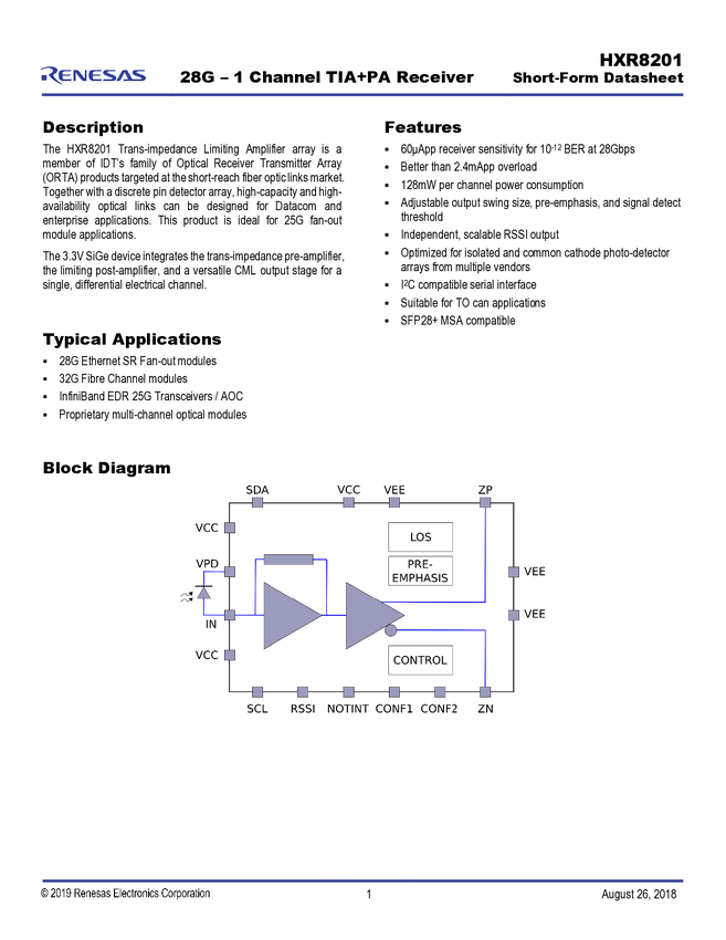Single Channel 28Gbaud Linear TIA 10Km