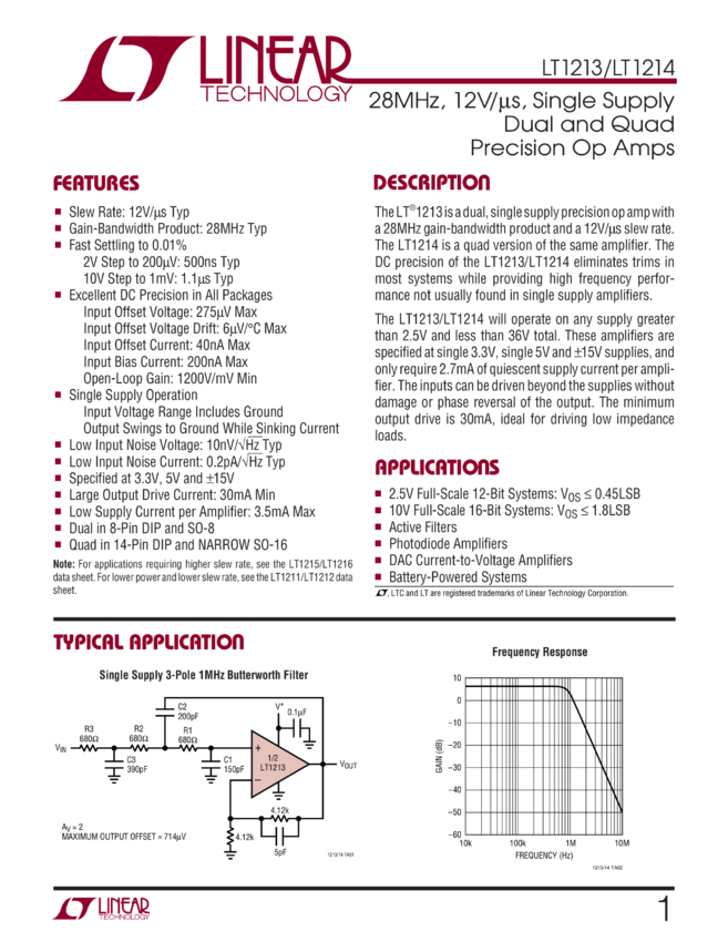 28MHz, 12V/µs, Single Supply Dual and Quad Precision Op Amps