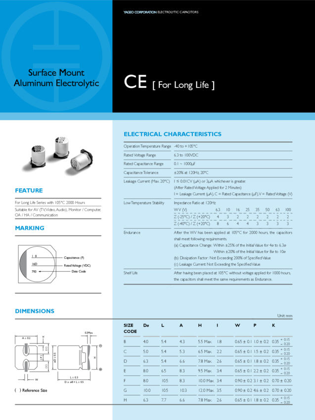 Cap Aluminum 10uF 35V 20% (5 X 5.4mm) SMD 28mA 2000h 105°C Embossed Plastic T/R