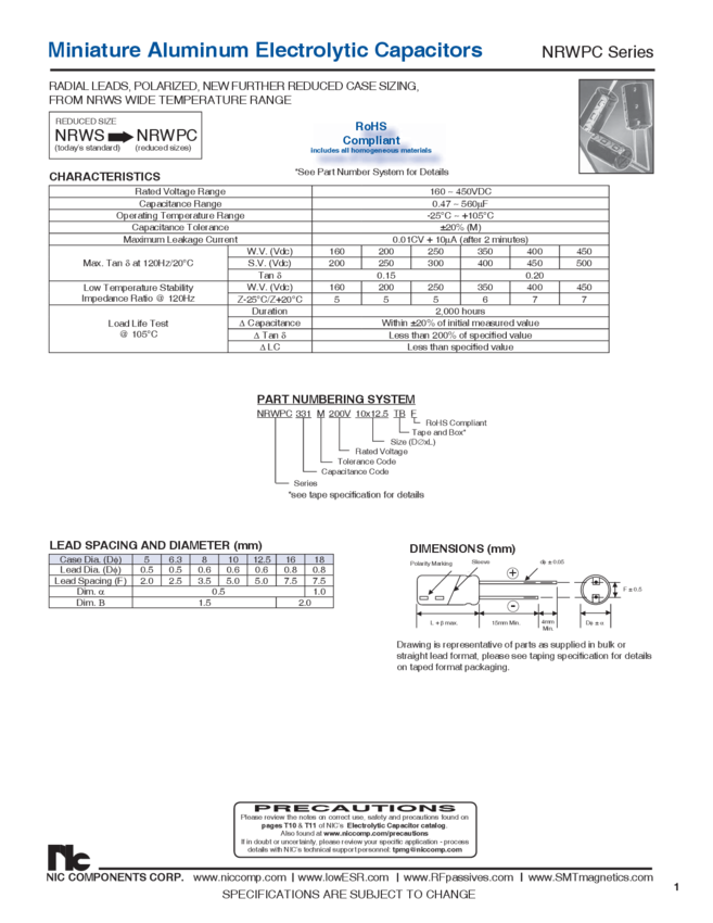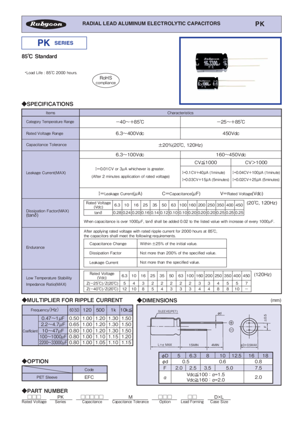 Cap Aluminum 820uF 50V 20% (10 X 28mm) Radial Aluminum Cylindrical Can 5mm 2000 hr 85°C Bulk