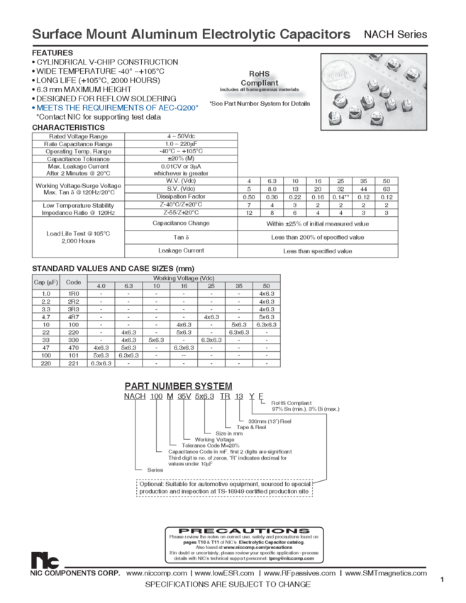 Cap Aluminum 10uF 35V 20% (5 X 6.3mm) SMD 19.9 Ohm 28mA 2000h 105°C T/R
