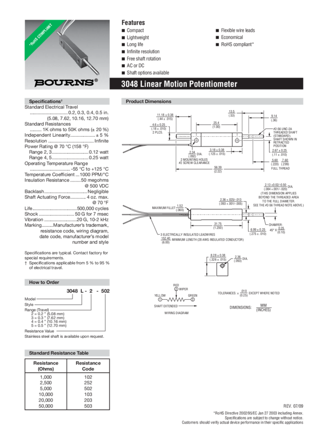 Res POT 5K Ohm 20% 1/4W 2.36mm (56.39 X 6.99 X 8.28mm) Lead Wire Screw Mount