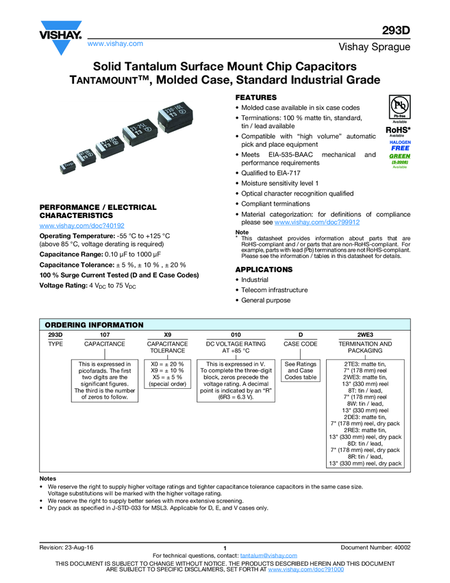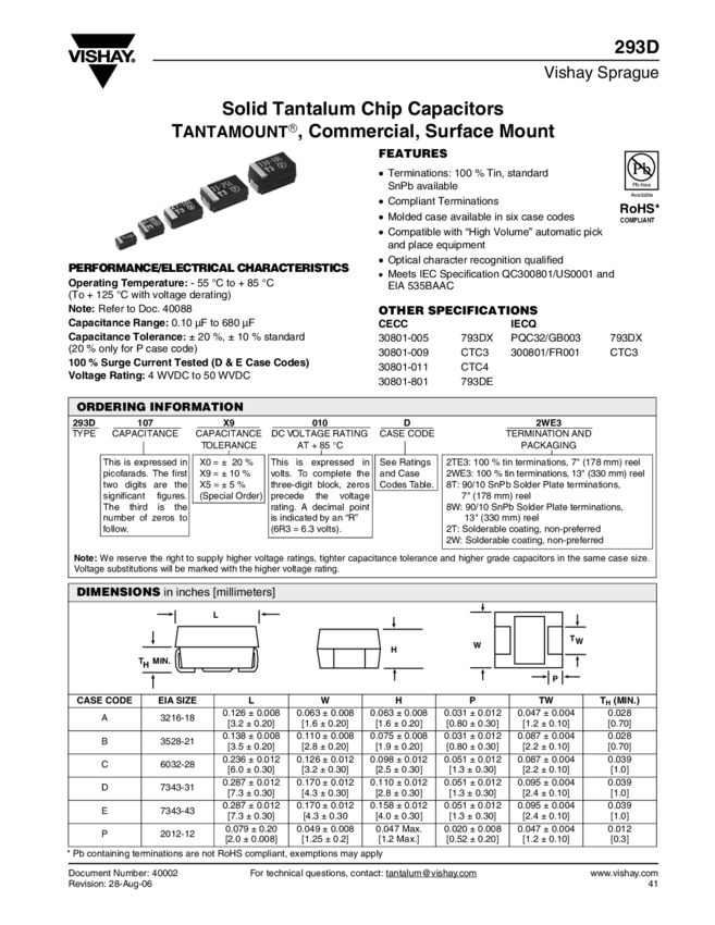 Solid Tantalum Surface Mount Chip Capacitors TANTAMOUNT™, Molded Case, Standard Industrial Grade