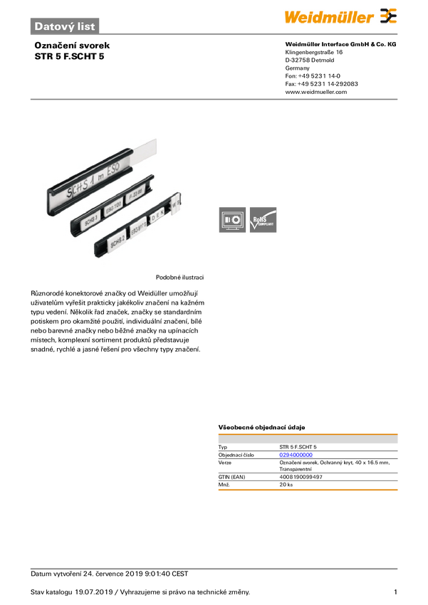 Weidmüller 294000000-20 Oznaczenie zacisków przeźroczysty 20 szt.