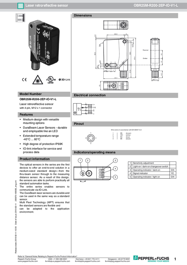 Czujnik fotoelektryczny Pepperl+Fuchs 295670-100087 1 szt.